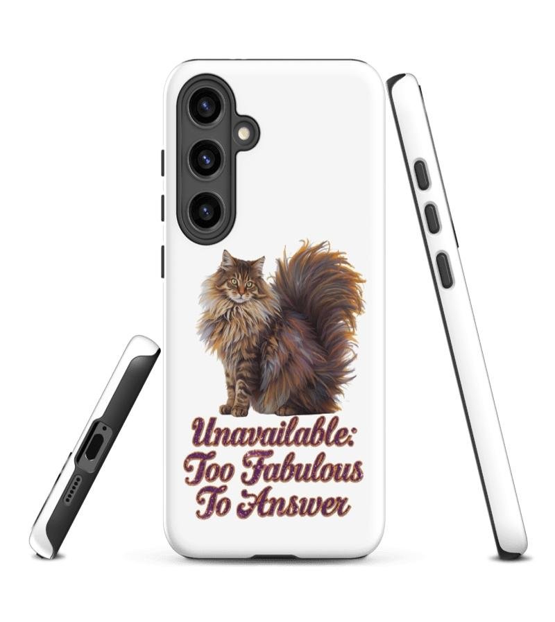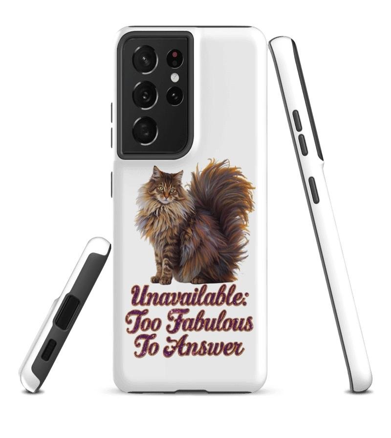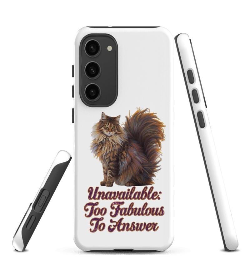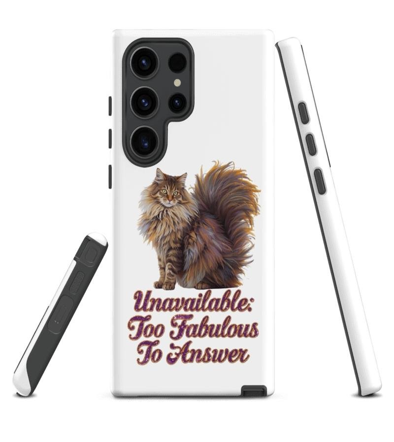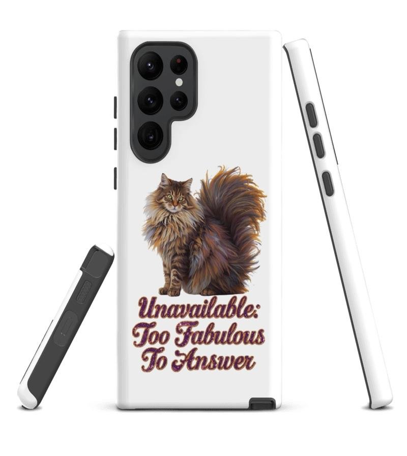 Ever seen a cat so majestic that you’re pretty sure nothing—not even your phone—could interrupt their glittering aura? This glamorous phone case is the ultimate tribute to the feline who knows that every moment is a red-carpet event. Draped in a show-stopping mane and sitting with enviable poise, this illustrated beauty captures that “too fabulous to answer” energy every cat lover secretly aspires to embody.