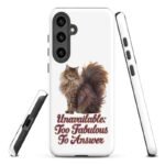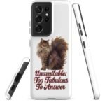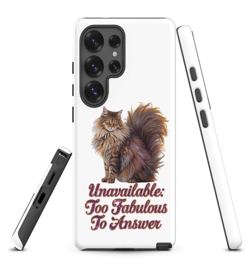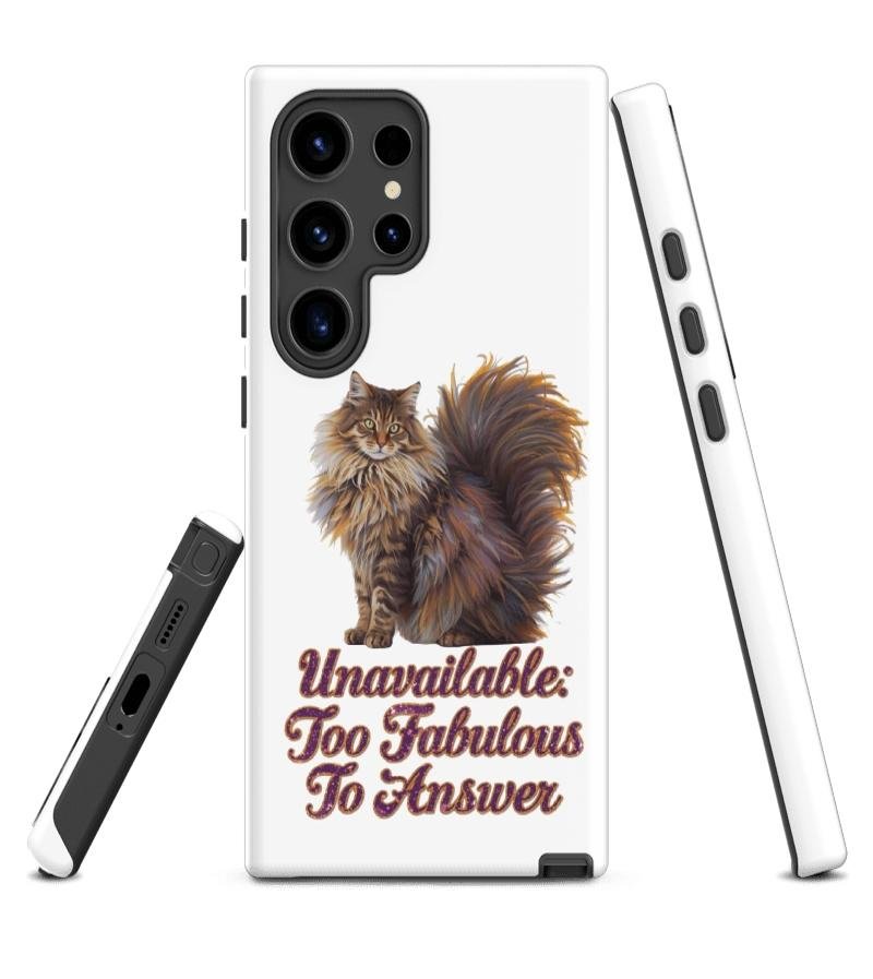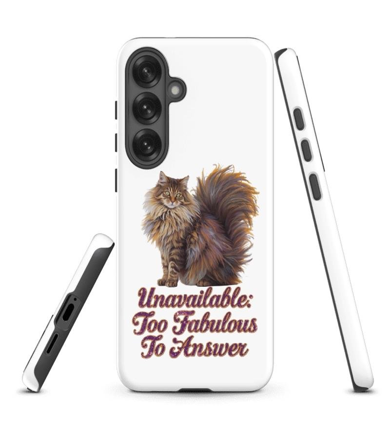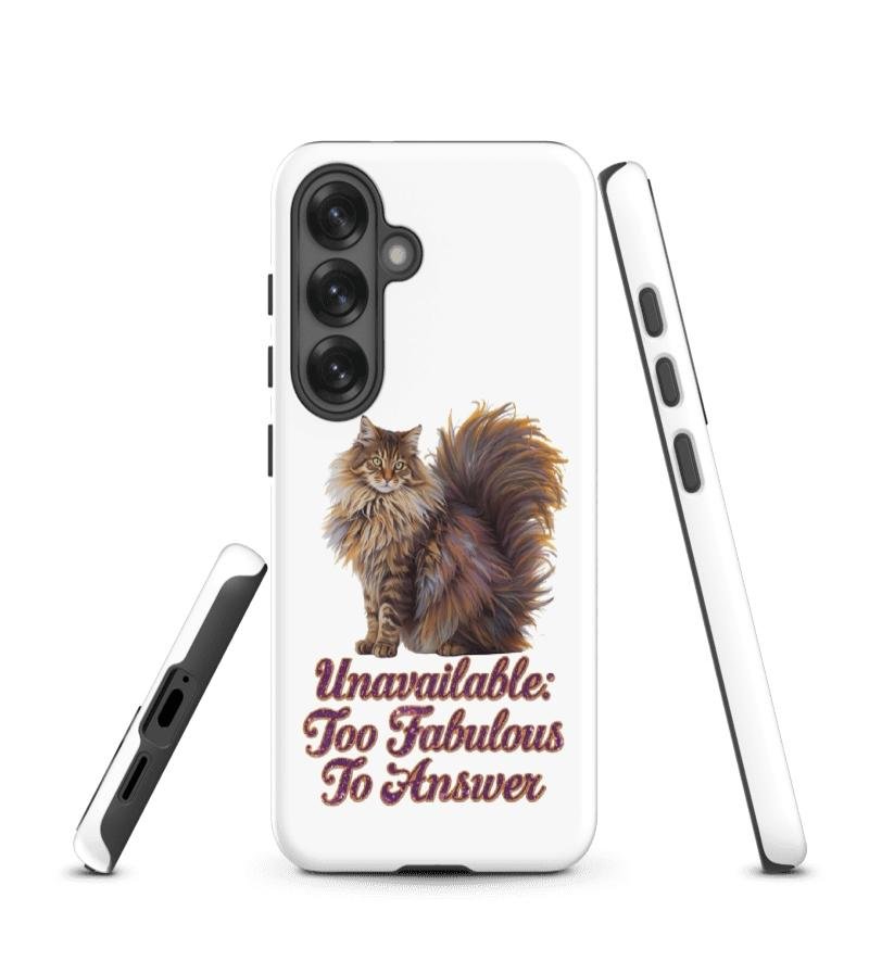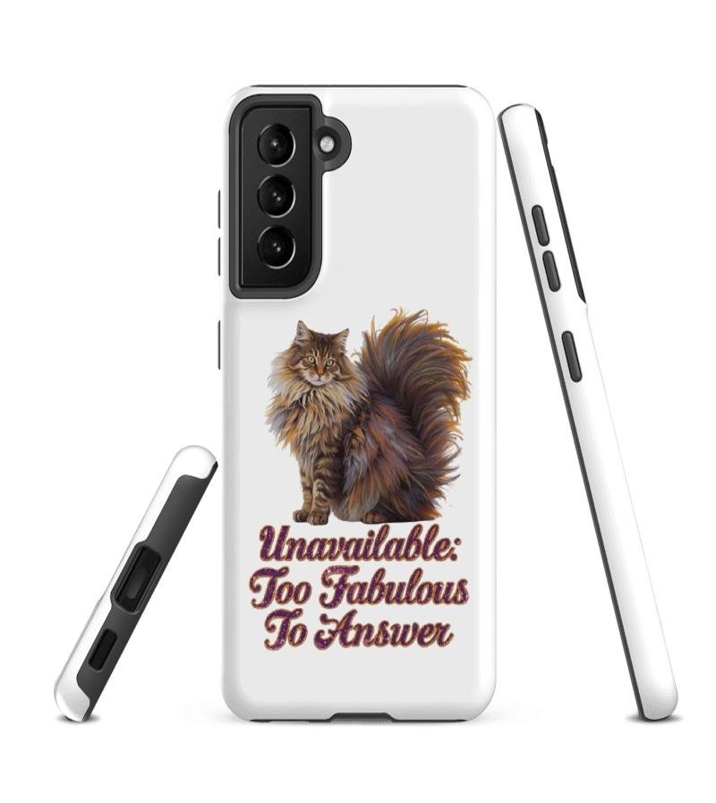 Ever seen a cat so majestic that you’re pretty sure nothing—not even your phone—could interrupt their glittering aura? This glamorous phone case is the ultimate tribute to the feline who knows that every moment is a red-carpet event. Draped in a show-stopping mane and sitting with enviable poise, this illustrated beauty captures that “too fabulous to answer” energy every cat lover secretly aspires to embody.