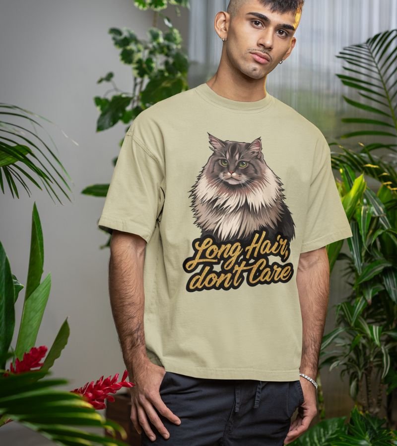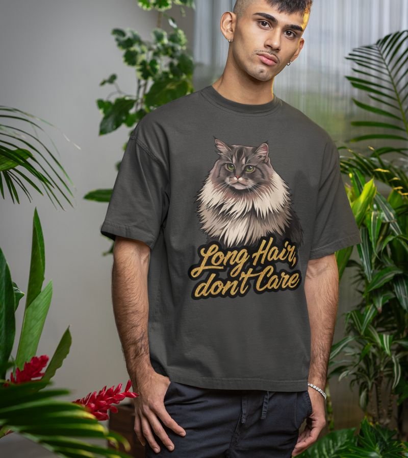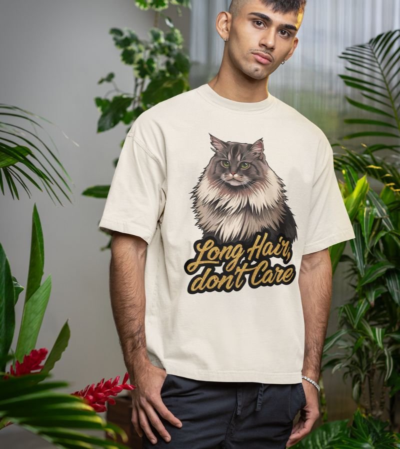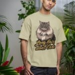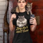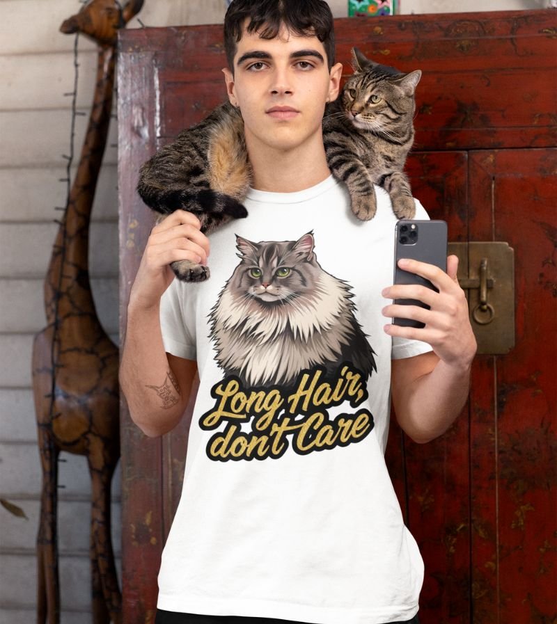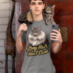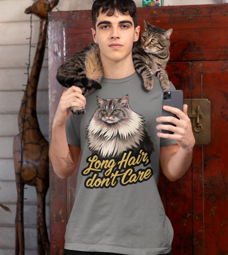 This gorgeous long-haired cat knows the secret to happiness – when you’re blessed with this much natural beauty, a little extra fur maintenance is totally worth it! With those stunning green eyes and that luxurious flowing coat, this design celebrates every fluffy feline who’s mastered the art of looking absolutely magnificent while leaving their signature everywhere.