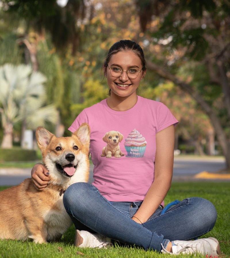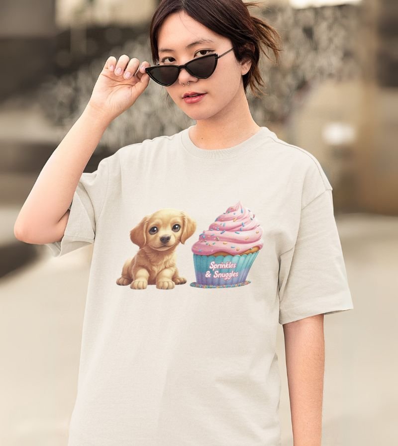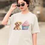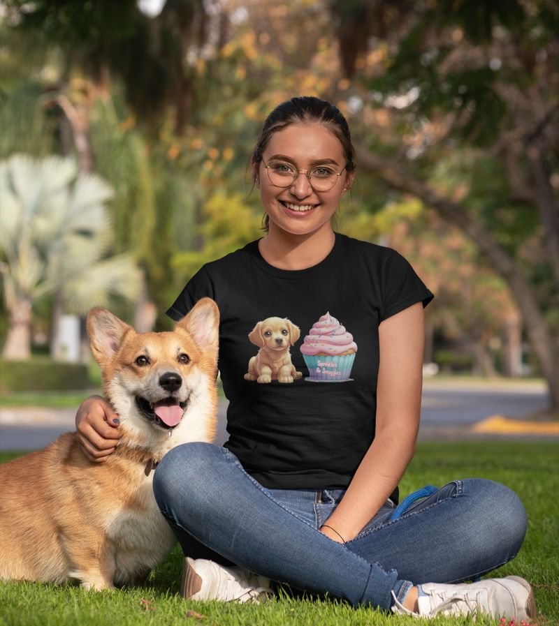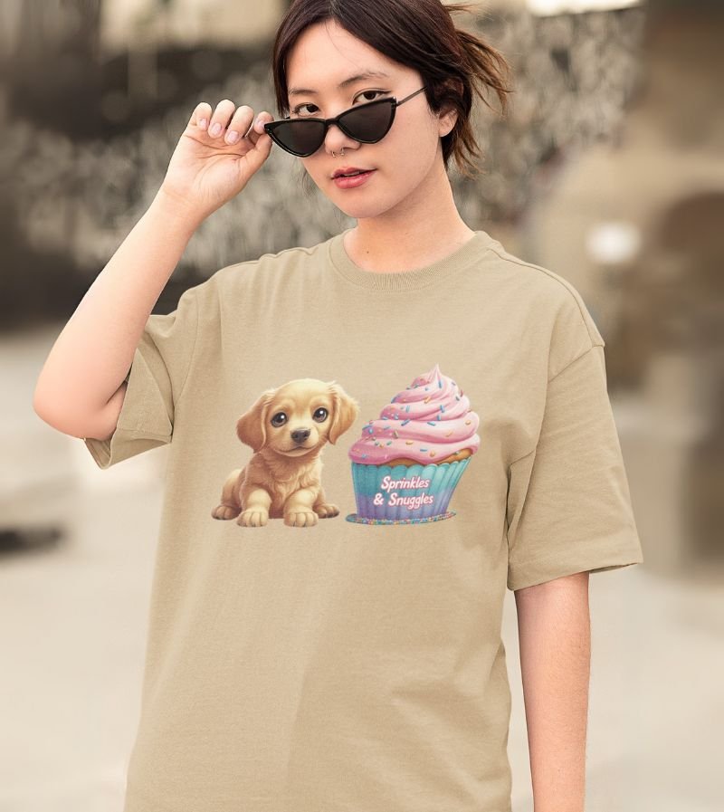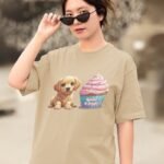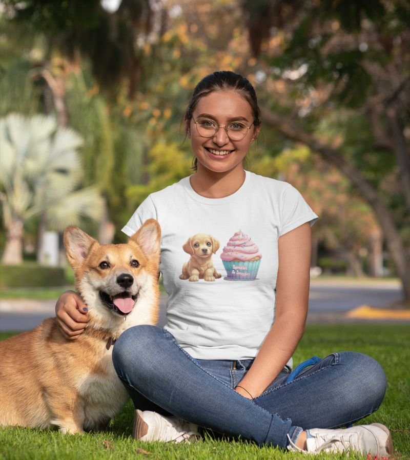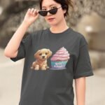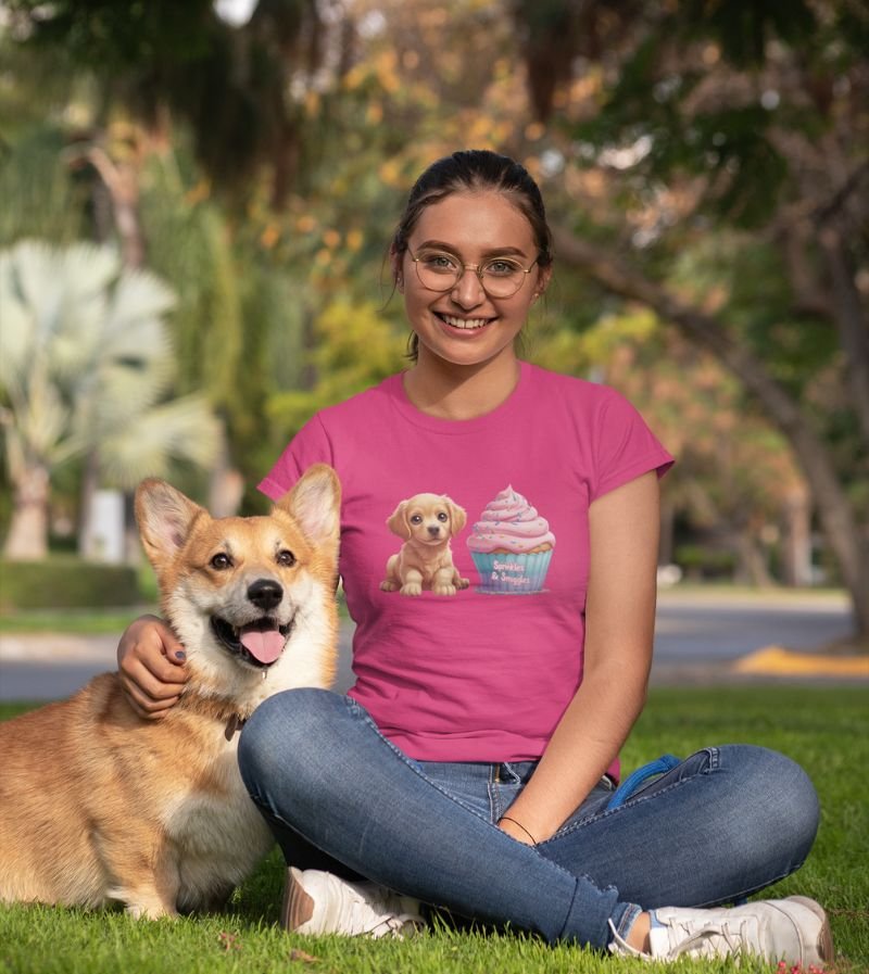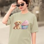 This absolutely adorable design features the most precious golden puppy sitting beside a giant rainbow cupcake that’s almost as sweet as those irresistible puppy dog eyes! With colorful sprinkles scattered everywhere and that heart-melting expression, this design celebrates the beautiful truth that life’s sweetest moments come with four paws and unconditional love.