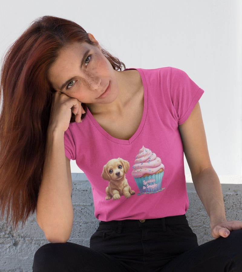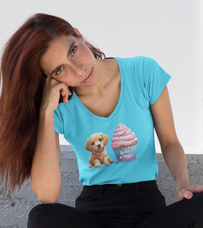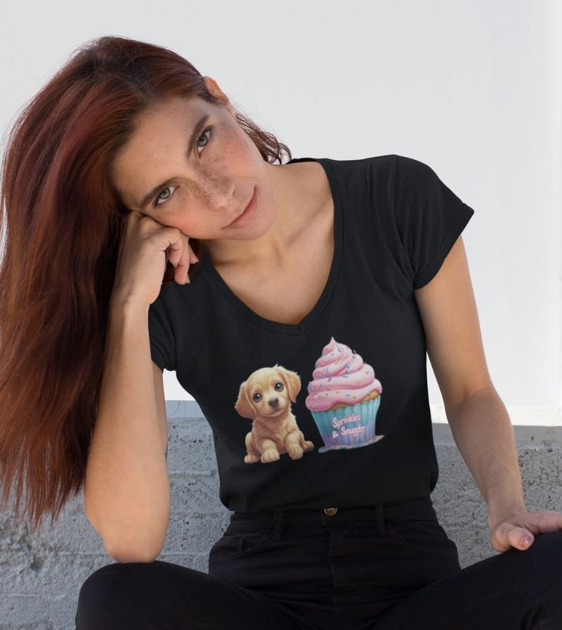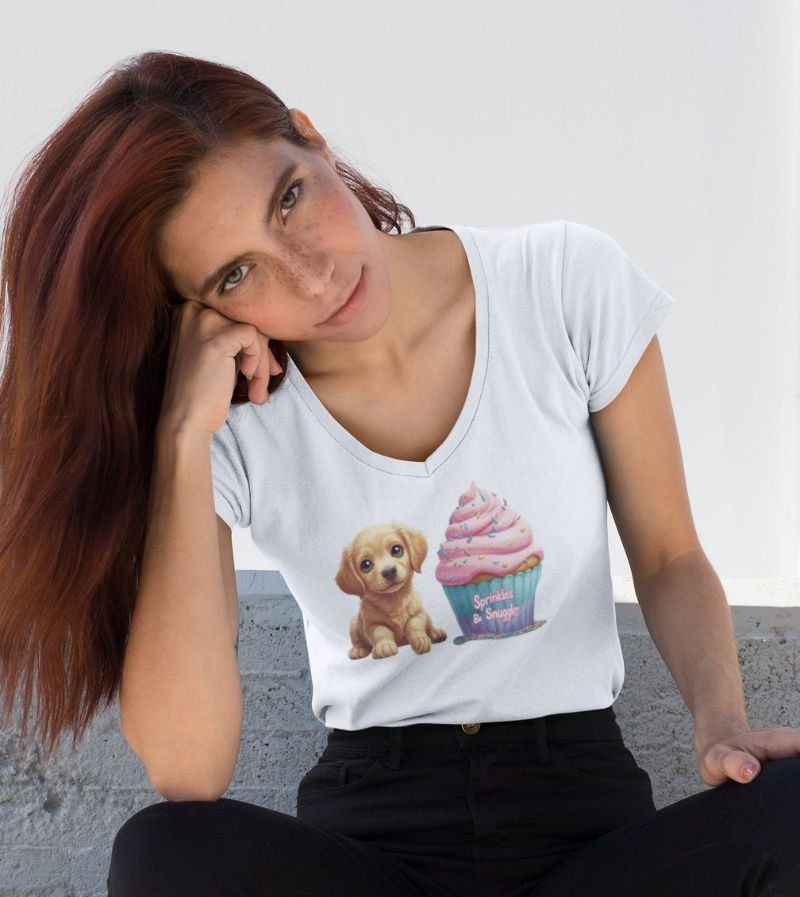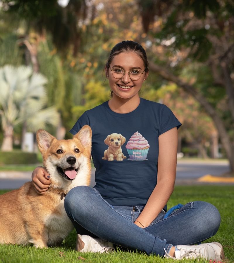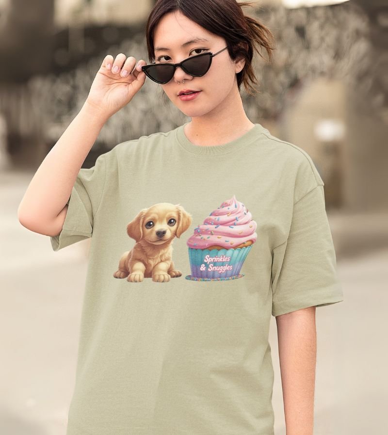 This absolutely adorable design features the most precious golden puppy sitting beside a giant rainbow cupcake that’s almost as sweet as those irresistible puppy dog eyes! With colorful sprinkles scattered everywhere and that heart-melting expression, this design celebrates the beautiful truth that life’s sweetest moments come with four paws and unconditional love.