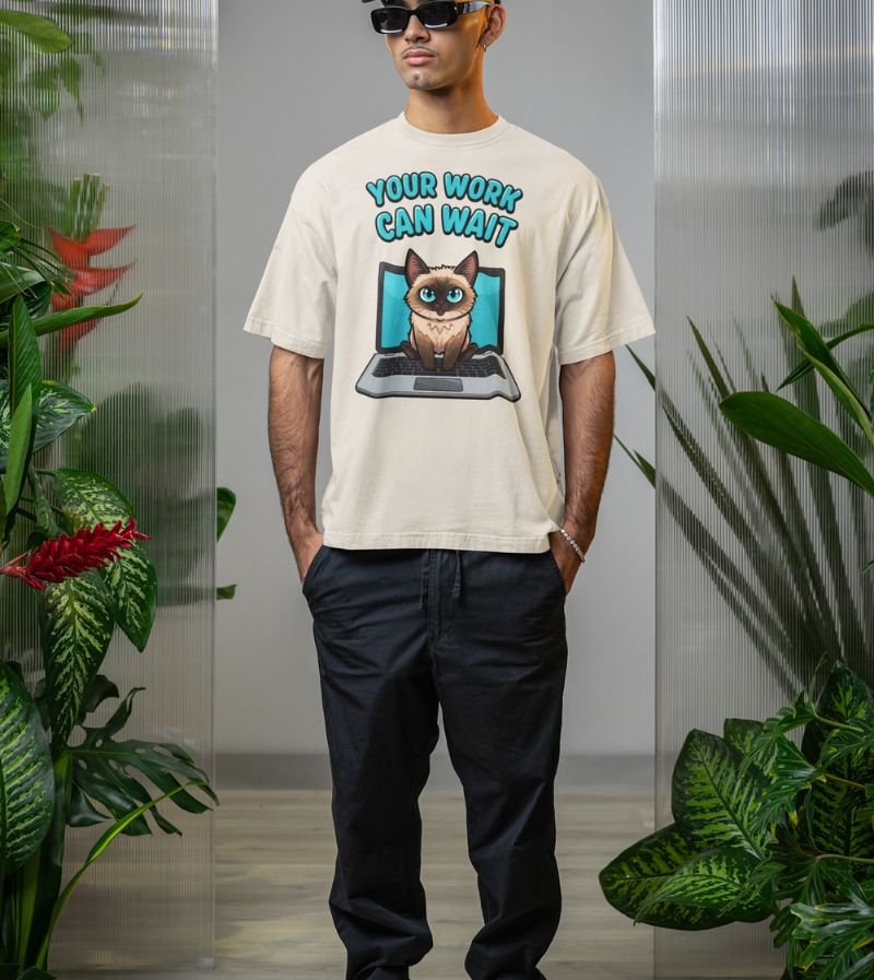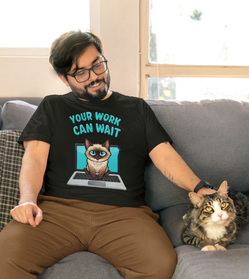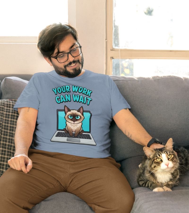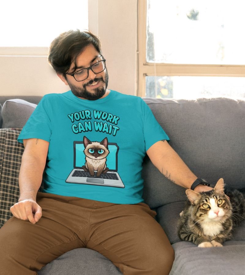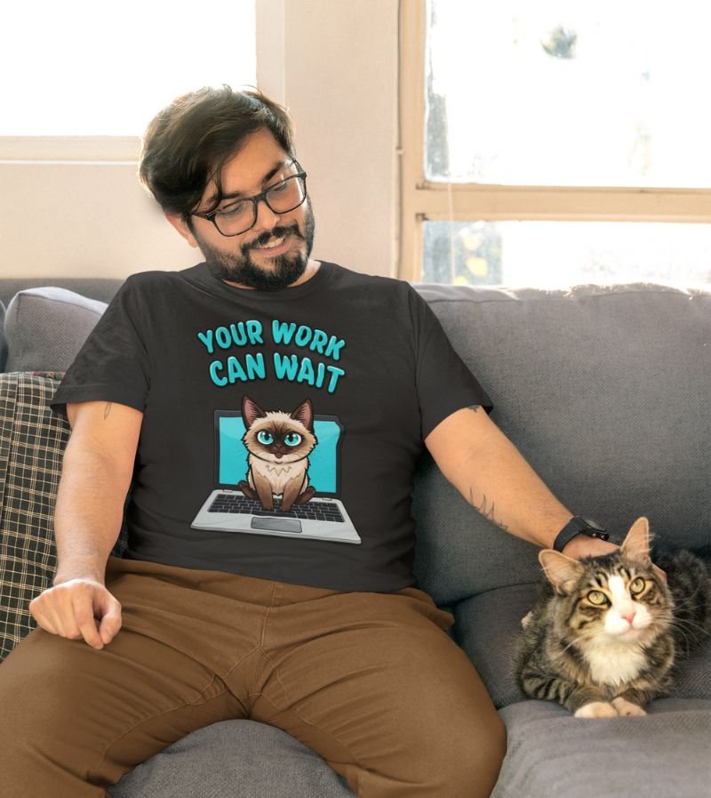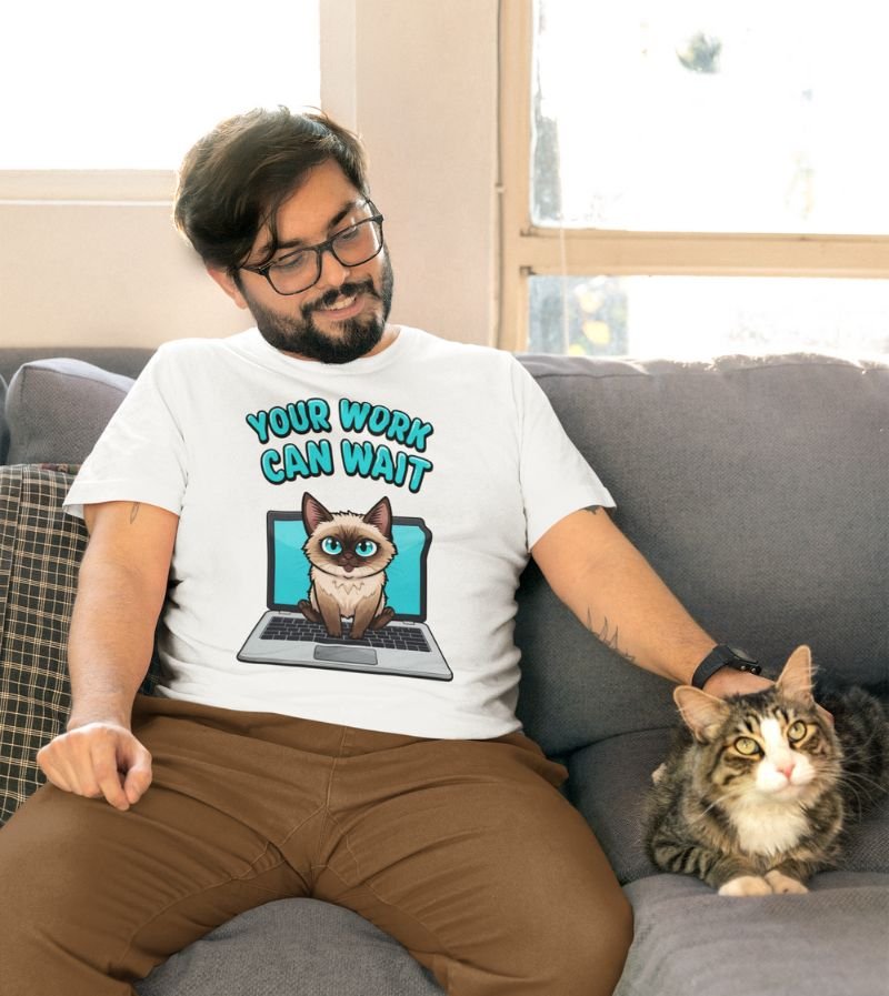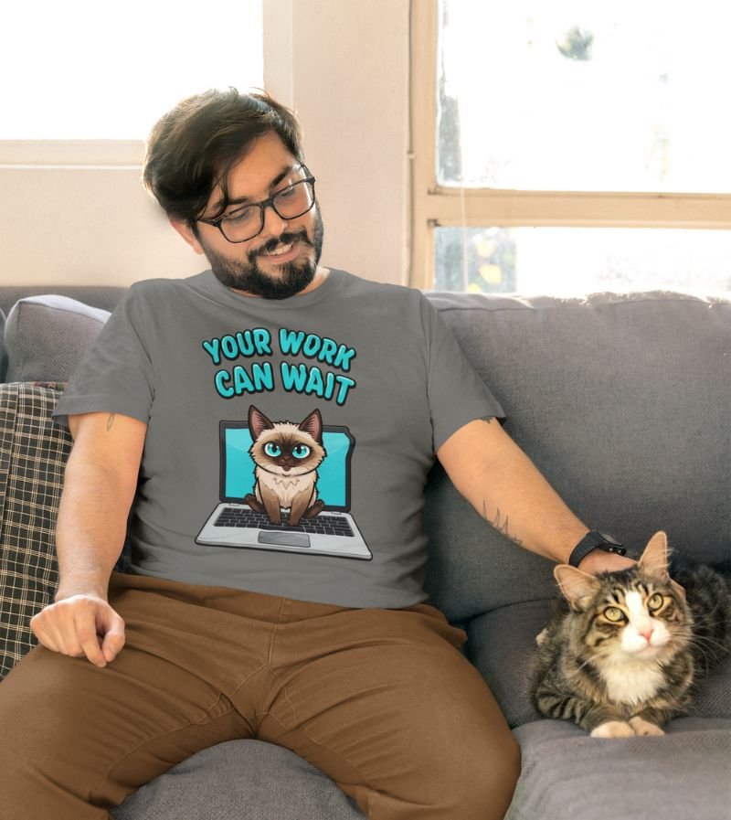 Embrace the truth that your Siamese supervisor knows best – some things in life are more important than work deadlines, and cuddles with your beautiful feline boss definitely top that list!